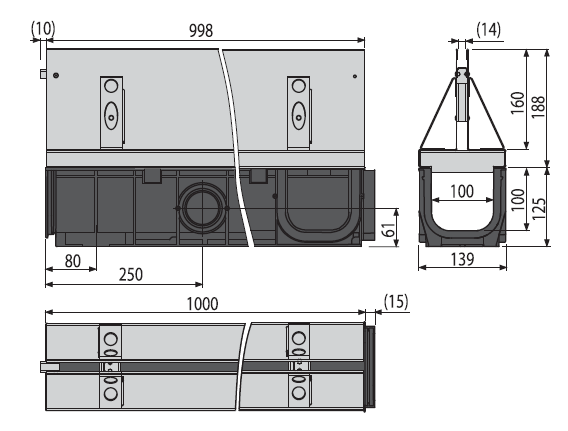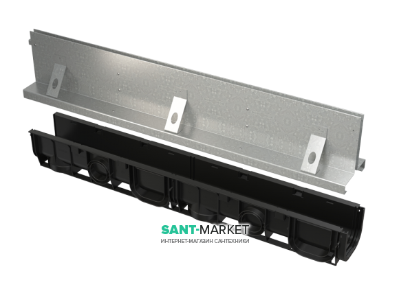 Щелевой дренажный канал 160 мм с симметричной надставкой из оцинкованной стали С250