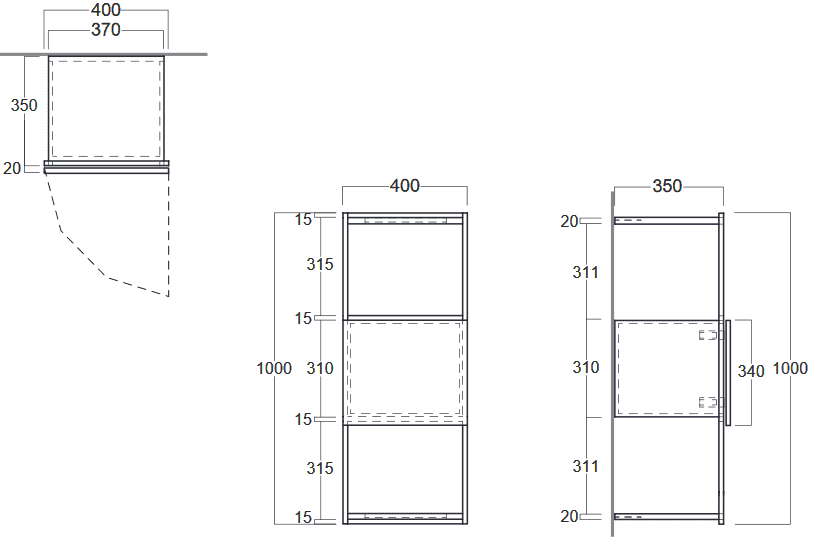 - Подвесной пенал, структура из металла с деревянными полками и ящиками