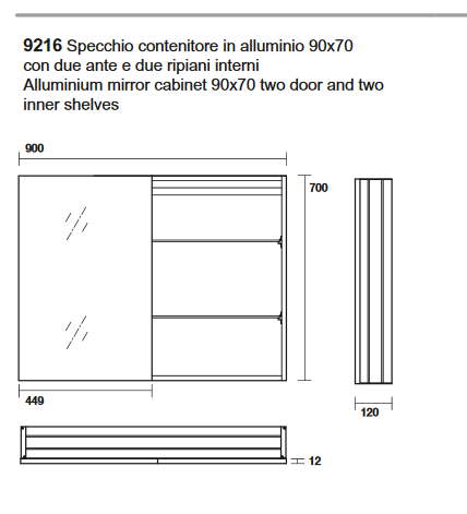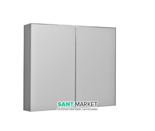 - Зеркальный шкаф алюминиевый 90х70 см с двумя дверцами и двумя полками внутри