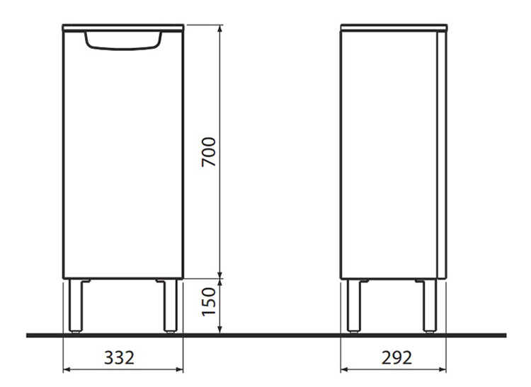 Полупенал подвесной 332*292*700 мм. Двери с механизмом soft-close, 2 регулируемые полки из ДСП. Возможность установки двери на правую или левую сторону. Подвесное крепление (возможность установки на ножки Rekord 99274000). Цвет - белый глянец.