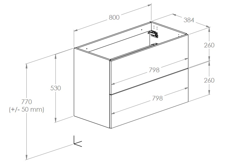верхний ящик без выреза под сифон, шкафчик без ручек (ручки можно купить отдельно)