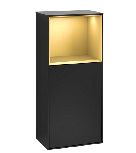 Шкафчик для ванной Villeroy & Boch Finion 41,8х93,6х27 см петли справа с подсветкой МДФ черный матовый лак/золотой матовый лак