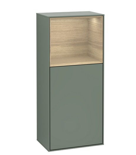 Шкафчик для ванной Villeroy & Boch Finion 41,8х93,6х27 см петли справа с подсветкой МДФ оливковый матовый лак/шпон дуба F510PCGM