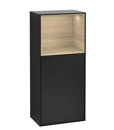 Шкафчик для ванной Villeroy & Boch Finion 41,8х93,6х27 см петли справа с подсветкой МДФ черный матовый лак/шпон дуба