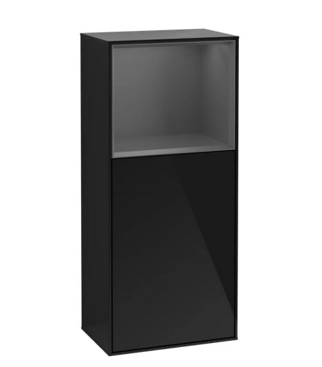 Шкафчик для ванной Villeroy & Boch Finion 41,8х93,6х27 см петли справа с подсветкой МДФ глянцевый черный лак/антрацит матовый лак