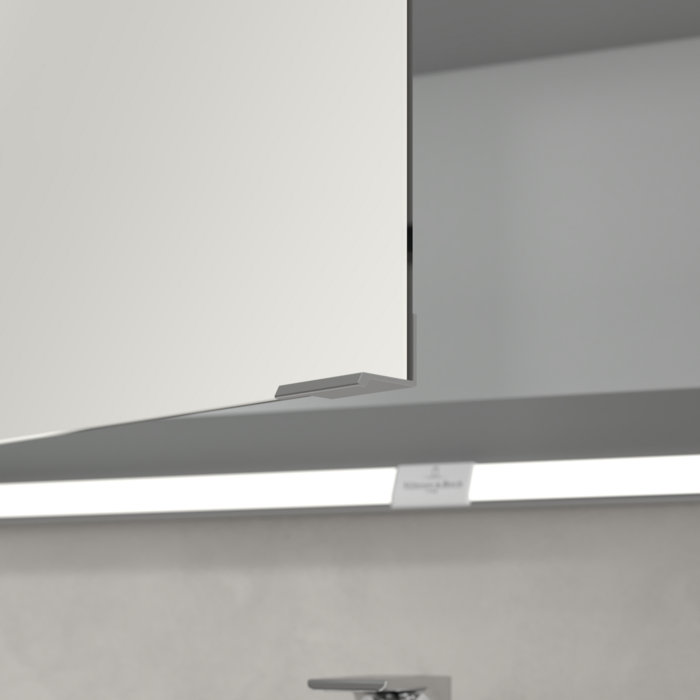 Встроенная светодиодная лента по всему периметру. Светодиодная лента, расположенная по периметру зеркальной поверхности, обеспечивает оптимальное и практически равномерное освещение лица со всех сторон. Служит ли он для оптимального освещения во время укладки или в качестве источника, излучающего приятный свет во время принятия расслабляющей ванны, — в любой ситуации шкаф My View Now обеспечивает соответствующее освещение благодаря плавно регулируемой световой температуре и яркости света. К тому же светодиодная лента легко заменяется. При наружном монтаже расположенная снизу светодиодная лента гарантирует оптимальное освещение раковины.