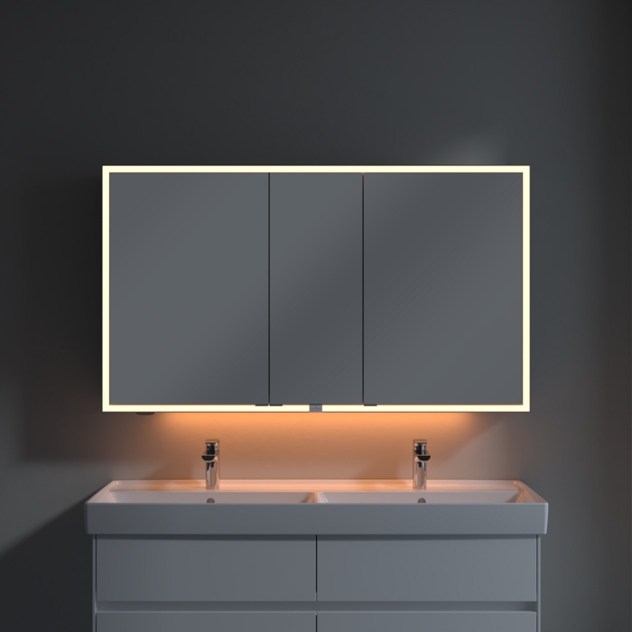 Встроенная светодиодная лента по всему периметру. Светодиодная лента, расположенная по периметру зеркальной поверхности, обеспечивает оптимальное и практически равномерное освещение лица со всех сторон. Служит ли он для оптимального освещения во время укладки или в качестве источника, излучающего приятный свет во время принятия расслабляющей ванны, — в любой ситуации шкаф My View Now обеспечивает соответствующее освещение благодаря плавно регулируемой световой температуре и яркости света. К тому же светодиодная лента легко заменяется. При наружном монтаже расположенная снизу светодиодная лента гарантирует оптимальное освещение раковины.