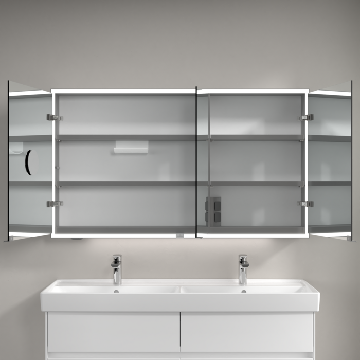 Зеркальные шкафы Villeroy & Boch — красота в сочетании с пользой. Практично и красиво — это настоящая изюминка ванной комнаты: в зеркальном шкафу Villeroy & Boch сочетаются преимущества зеркала и практичного места для хранения. С зеркалами по всей поверхности или безупречно вписанные в стену: откройте для себя зеркальные шкафы Villeroy & Boch.