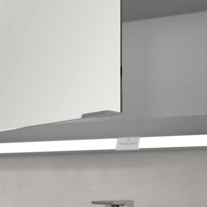 Встроенная светодиодная лента по всему периметру. Светодиодная лента, расположенная по периметру зеркальной поверхности, обеспечивает оптимальное и практически равномерное освещение лица со всех сторон. Служит ли он для оптимального освещения во время укладки или в качестве источника, излучающего приятный свет во время принятия расслабляющей ванны, — в любой ситуации шкаф My View Now обеспечивает соответствующее освещение благодаря плавно регулируемой световой температуре и яркости света. К тому же светодиодная лента легко заменяется. При наружном монтаже расположенная снизу светодиодная лента гарантирует оптимальное освещение раковины.