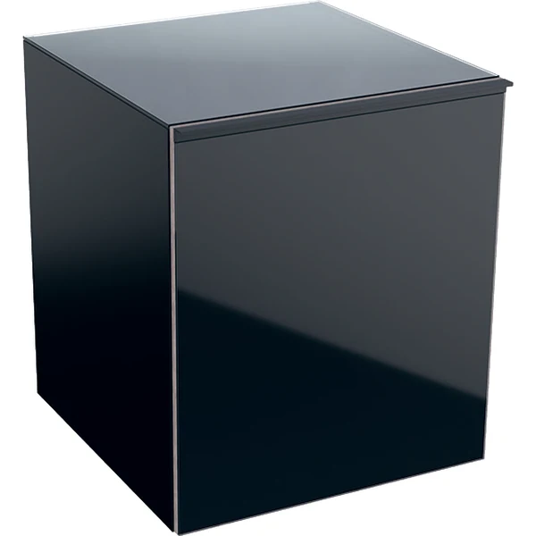 Шкафчик подвесной Geberit Acanto 45х52 см с одним выдвижным ящиком и внутренним выдвижным ящиком ДСП черный матовый/глянцевое стекло