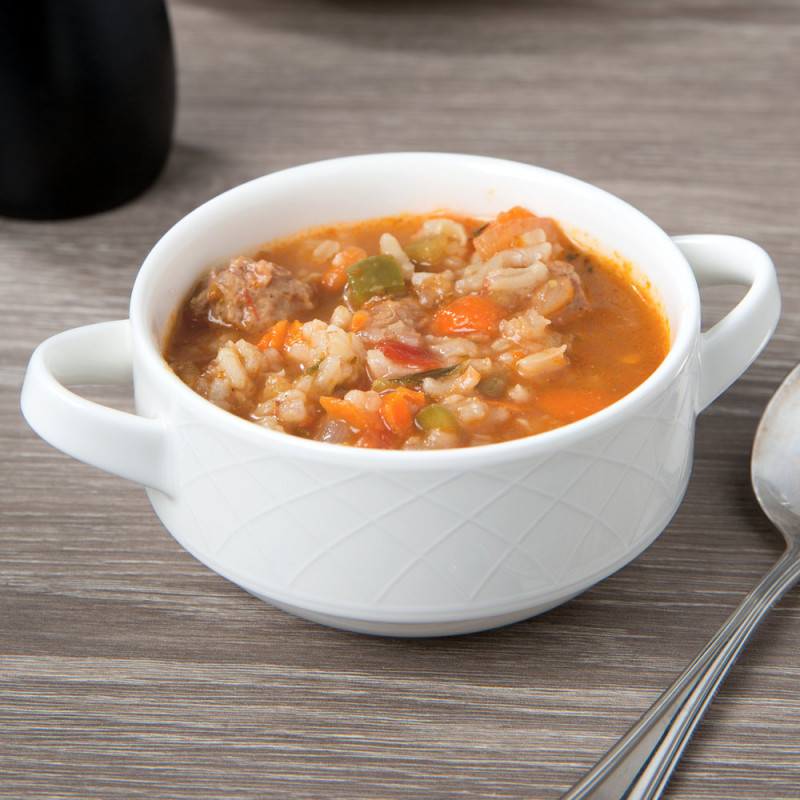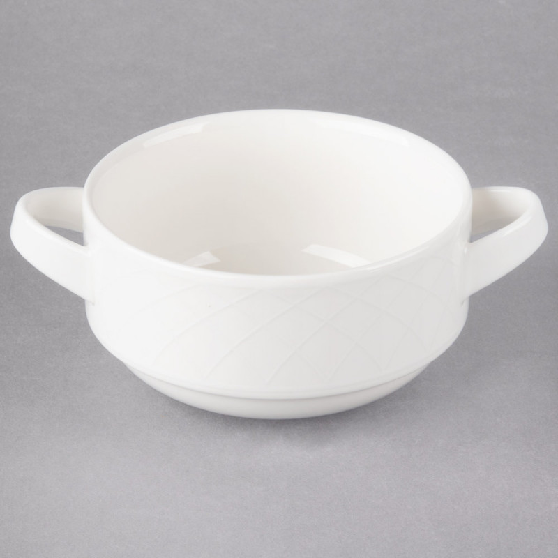 Эта модель Villeroy & Boch Bella придаст элегантности и утонченности. Суповая чашка из белого фарфора с ручками - это предмет свежего белого цвета, является профессиональным и привлекательным решением для сервировки вашего ресторана, отеля или обеденного зала загородного клуба. Его простой силуэт и цвет создают контраст, позволяя вашим ярким свежим блюдам стать центральным элементом любой обеденной зоны. Используйте эту складную чашку для супа с ручками, чтобы подавать супы, тушеные блюда и похлебки. Этот предмет украшен привлекательным перекрещивающимся узором, который обеспечивает тонкую, элегантную детализацию, добавляя визуальный интерес к вашей настольной презентации. Подавайте его отдельно или сочетайте его с остальной частью коллекции Bella для привлекательной и профессиональной презентации.Villeroy & Boch поставляет столовую посуду из фарфора премиум-класса с 1748 года. Благодаря сочетанию высококачественных материалов с ведущим в отрасли дизайном, эта немецкая компания стала стандартом среди рестораторов. Весь фарфор премиум-класса изготавливается из лучшего сырья и имеет глазурь двойного обжига для оптимальной долговечности. Придайте исключительное качество и изысканную форму своей столешнице с этим изделием Villeroy & Boch!