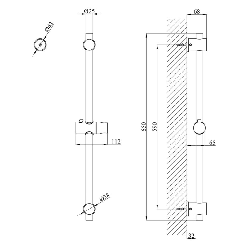 Штанга для душа Kroner KRP Edelstahl Klassisch-ESG230 65 см нержавеющая сталь никель CV022984