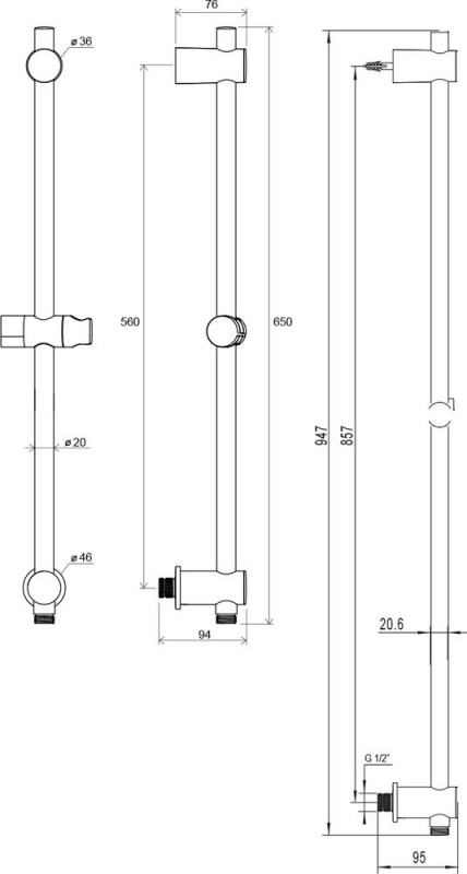 Штанга для душа Ravak 975.01 с подвижным держателем и настенным выводом