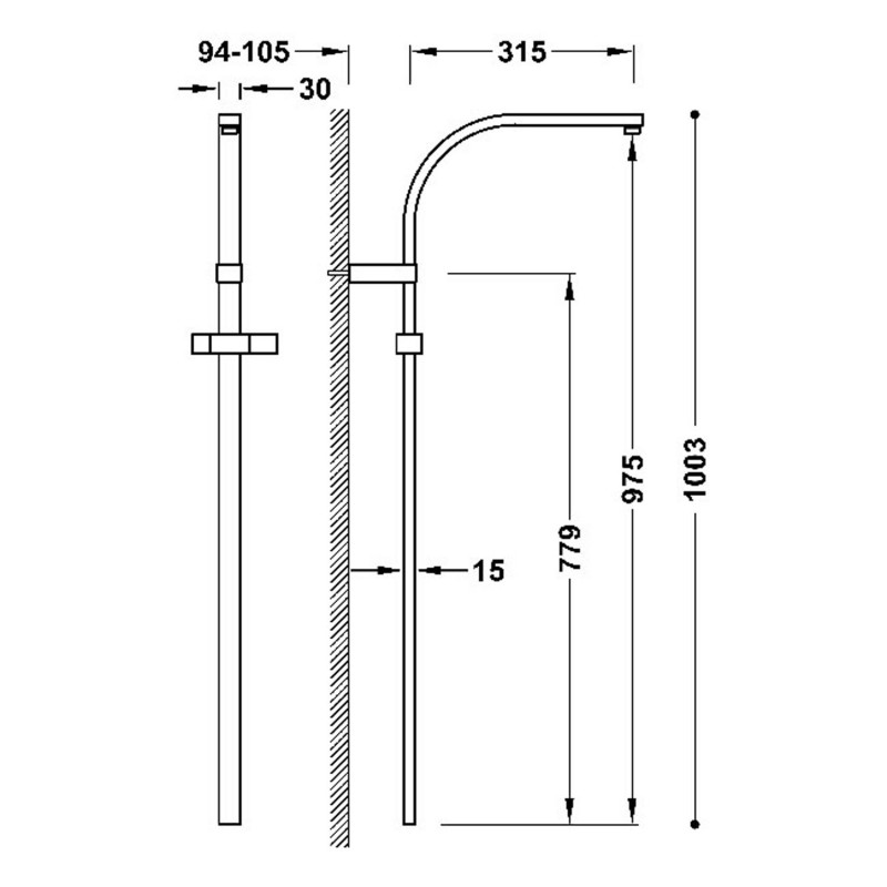 Штанга для душа Tres Over-wall 100,3 см латунь сталь