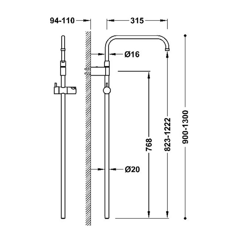 - телескопическая душевая штанга для настенного термостатического смесителя