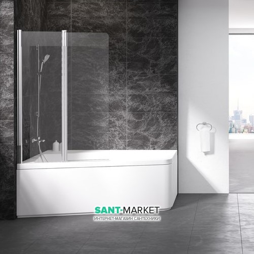 Шторка для прямоугольной ванны Ravak 10° 10CVS2 двухэлементная профиль полированный алюминий стекло transparent