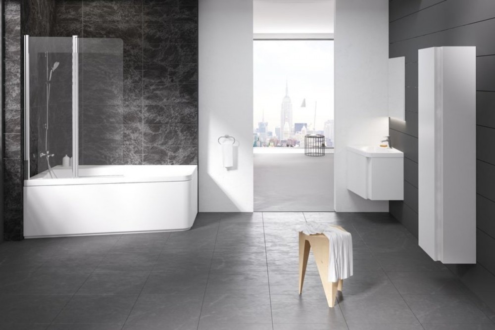 Качественная стеклянная штора, согласованная по дизайну с концепцией 10°. Поворотный механизм позволяет складывать штору как вовнутрь ванны, так и наружу, что в свою очередь облегчает уход за стеклом и предоставляет широкий вход в ванну.
