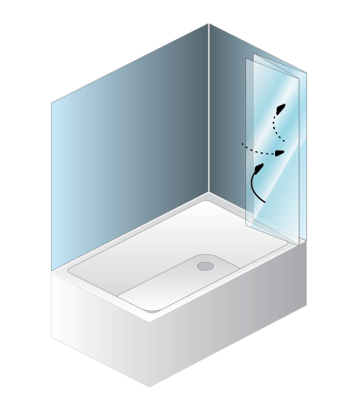 Складная трехстворчатая шторка для ванн Kolpa San Quat TP 140 из полистирольного стекла. Возможность монтажа слева или справа.