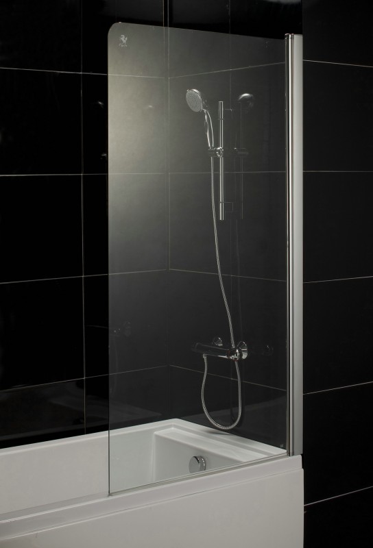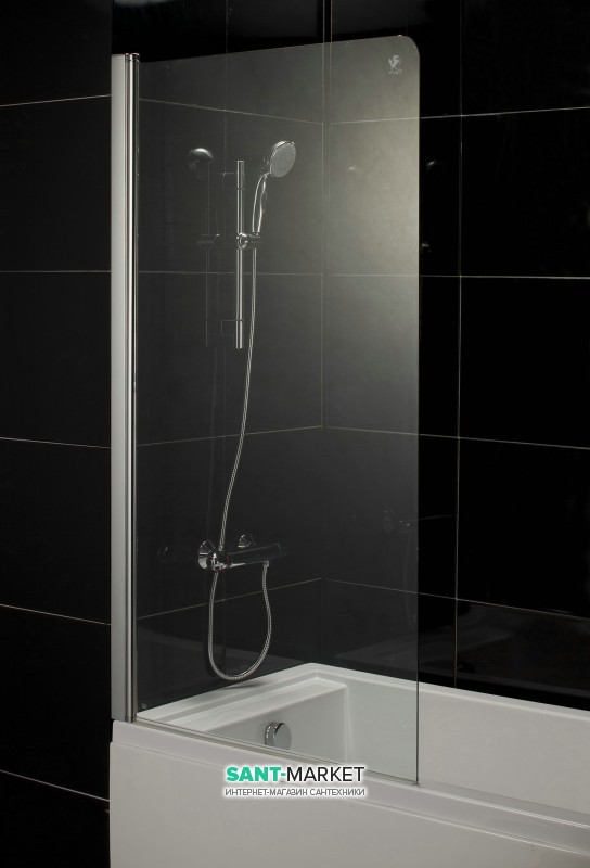 1) Шторка для ванны распашная Eger 80х150 правая/левая профиль алюминий хром стекло прозрачное