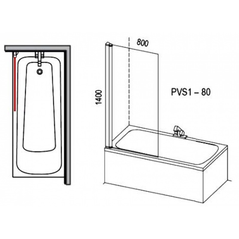 Шторка для ванны Ravak PVS1-80 одноэлементная профиль черный стекло transparent 79840300Z1