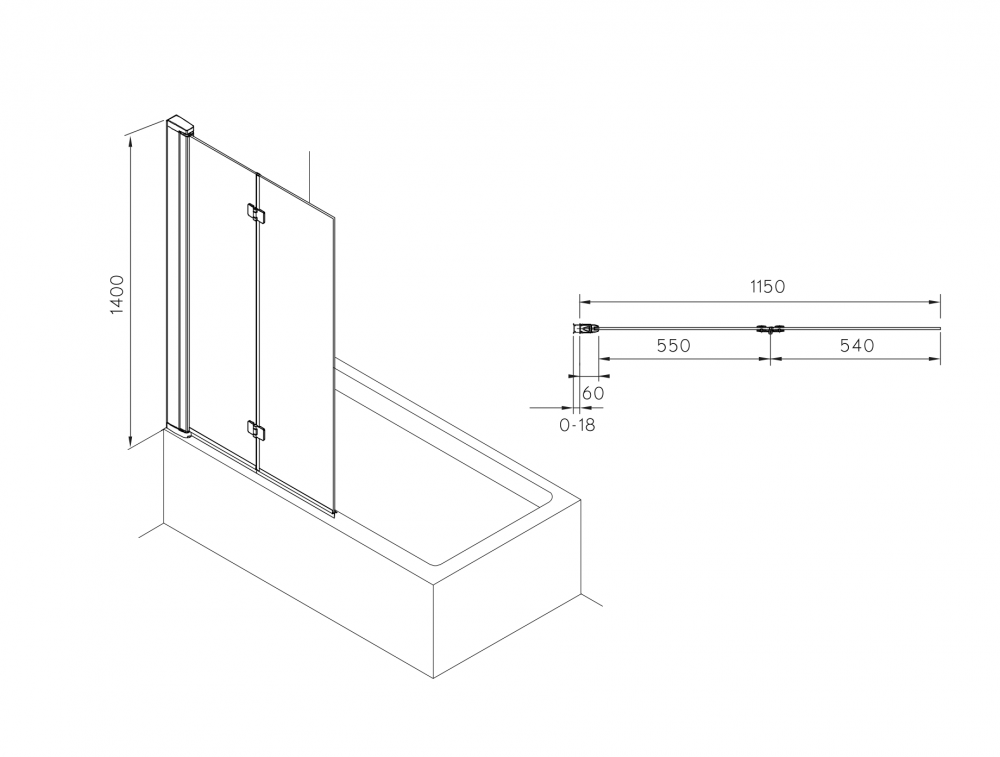 1) Шторка для ванны складывающаяся Roca Capital 115х140 двойная профиль алюминий хром стекло прозрачное