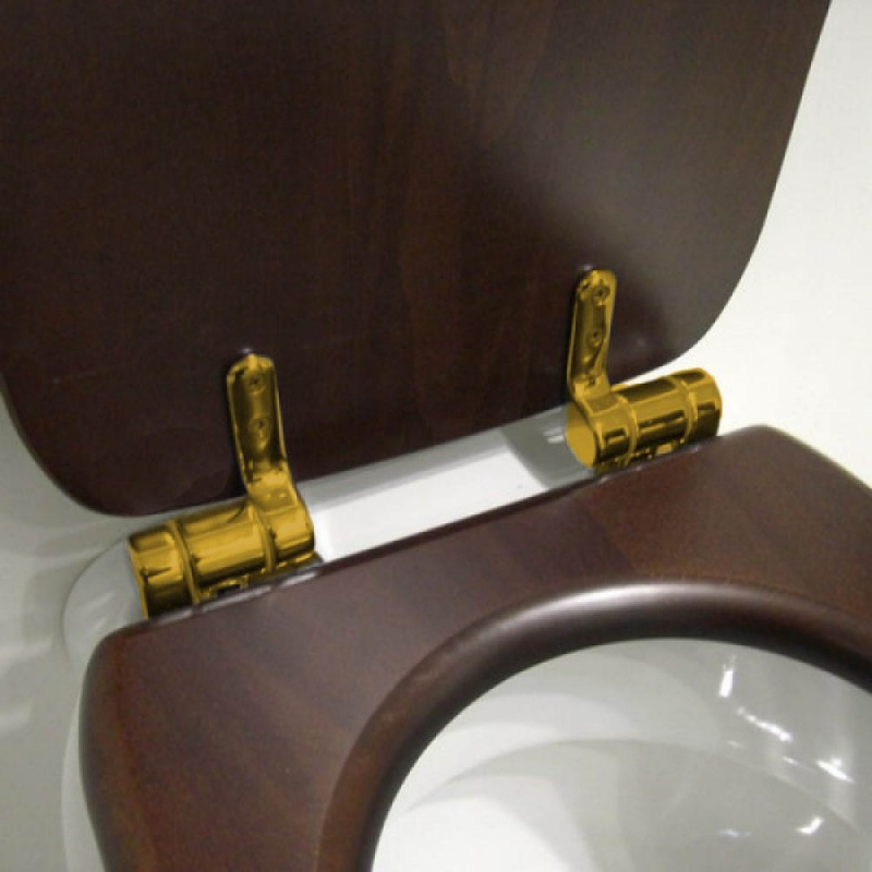 1) Сиденье с крышкой для унитаза Kerasan Waldorf с микролифтом дерево орех петли золото
