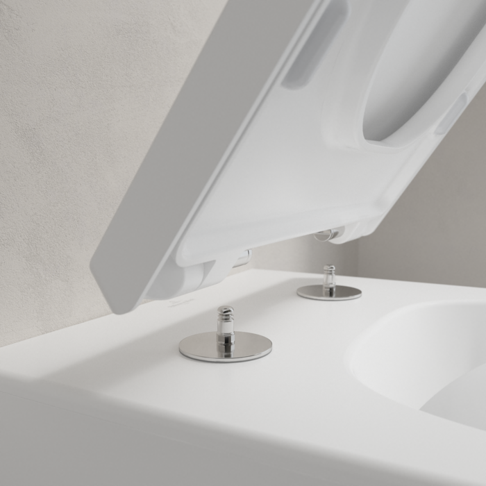 Благодаря встроенным в петли амортизаторам сиденья для унитаза с функцией SoftClosing Villeroy & Boch закрываются мягко и бесшумно. Механизм автоматического опускания повышает комфорт и предотвращает опасность защемления рук ребенка.