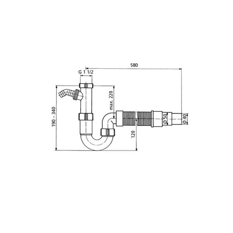 1) Сифон 1 ½" с гофрированной трубкой выход на 40 и 50 мм