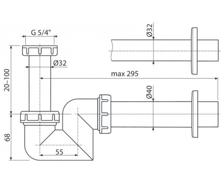 Сифон для раковины и биде AlcaPlast Ø32 мм полипропилен A45F-DN32