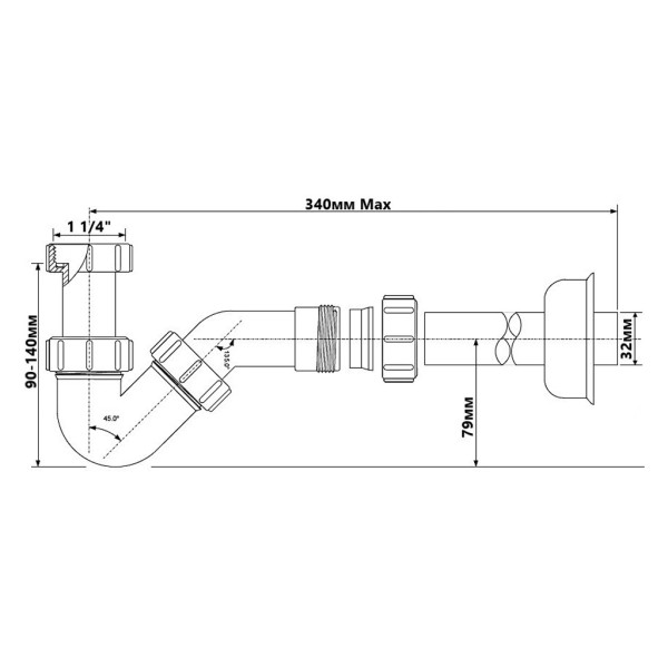 Сифон для биде трубчатый McAlpine HC23 без слива с трубой и розеткой 1 1/4х32мм пластик А0047341