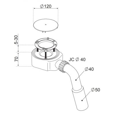 1) Сифон для душевого поддона Radaway R500 Slim хром