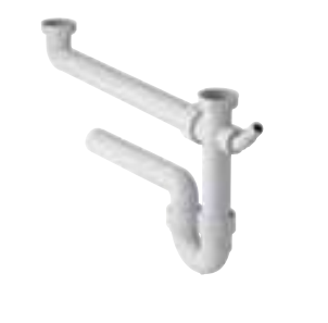 Сифон Geberit, для двойной кухонной раковины, с угловым шланговым соединителем, очень длинный, горизонтальный выпуск.