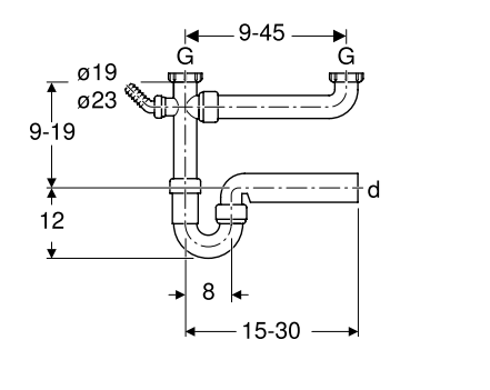 Сифон для двойной кухонной раковины Geberit с угловым шланговым соединителем