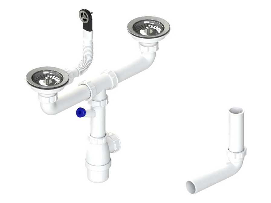 Сифон для кухонной мойки двойной с переливом пластик/металл матовый 00010FM