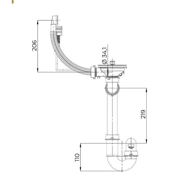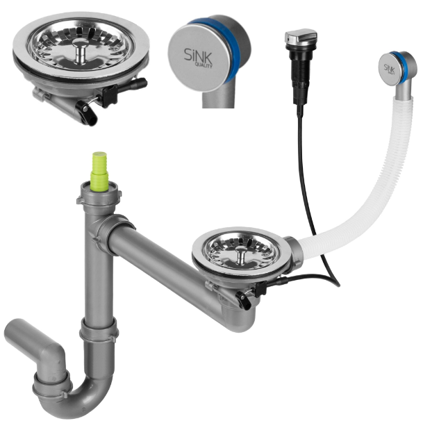 1) Сифон для кухонной мойки Fisc Italiana Premium 1K Auto автоматический однокамерный хром