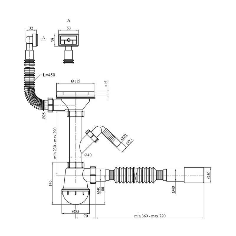 - Рабочий диапазон температур: Сифон спроектирован для надежной работы в широком диапазоне температур от 0 до +95°C, что обеспечивает стабильную производительность в разнообразных условиях.
