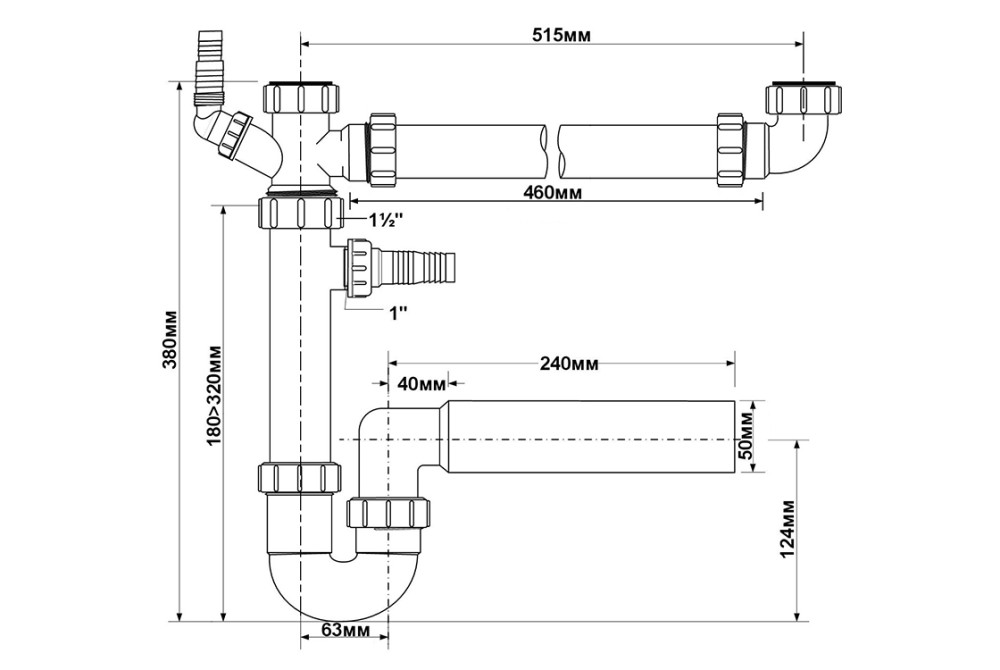 Сифон для кухонной мойки McAlpine двойной 1½х50 без слива с подключением к стиральной машине