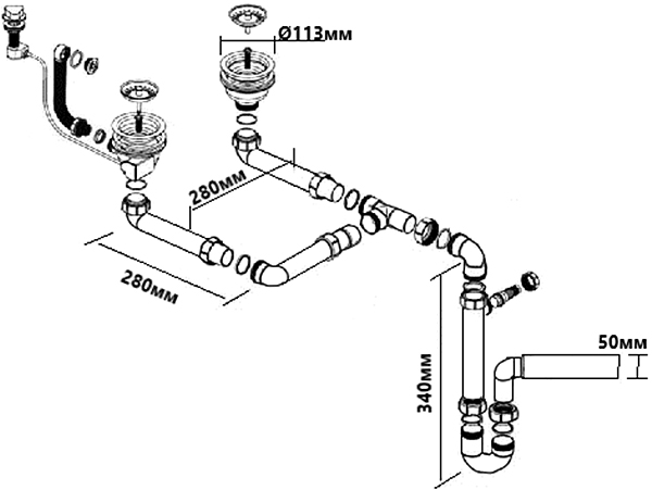Сифон для кухонной мойки McAlpine с удлинителями с автоматическим сливом