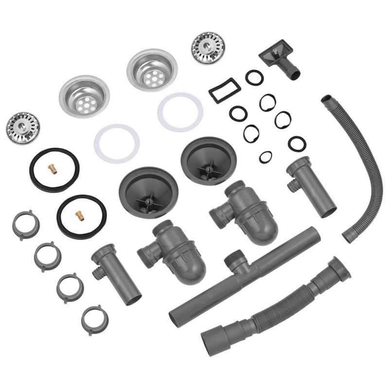 Сифон для кухонной мойки с 2 чашами Kroner KRP Siphon-012 3½''х40/50 мм серый CV023015