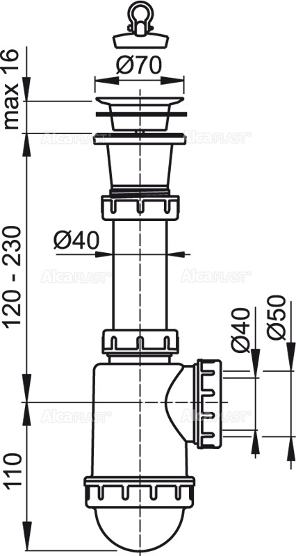 Сифон для мойки AlcaPlast c пластмассовой peшeткой