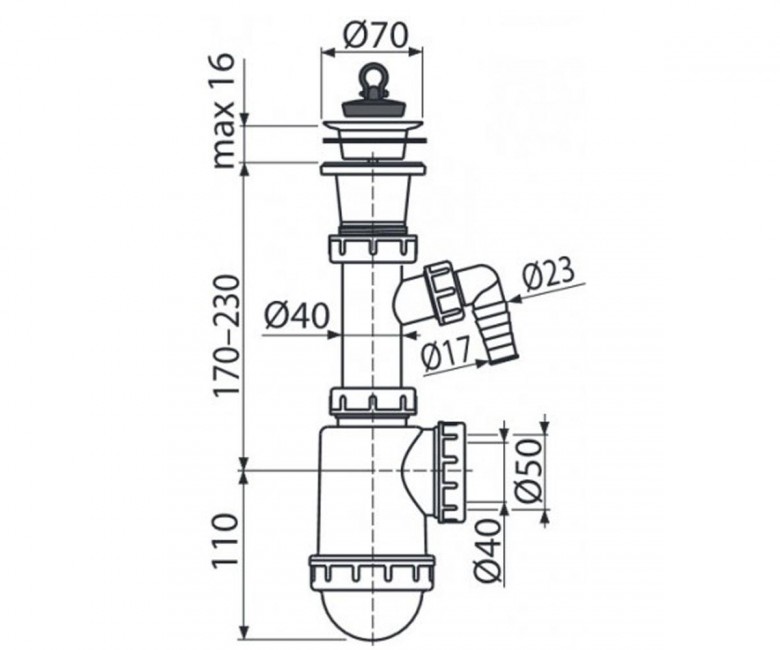 Сифон для мойки AlcaPlast c пластмассовой peшeткой и штуцером