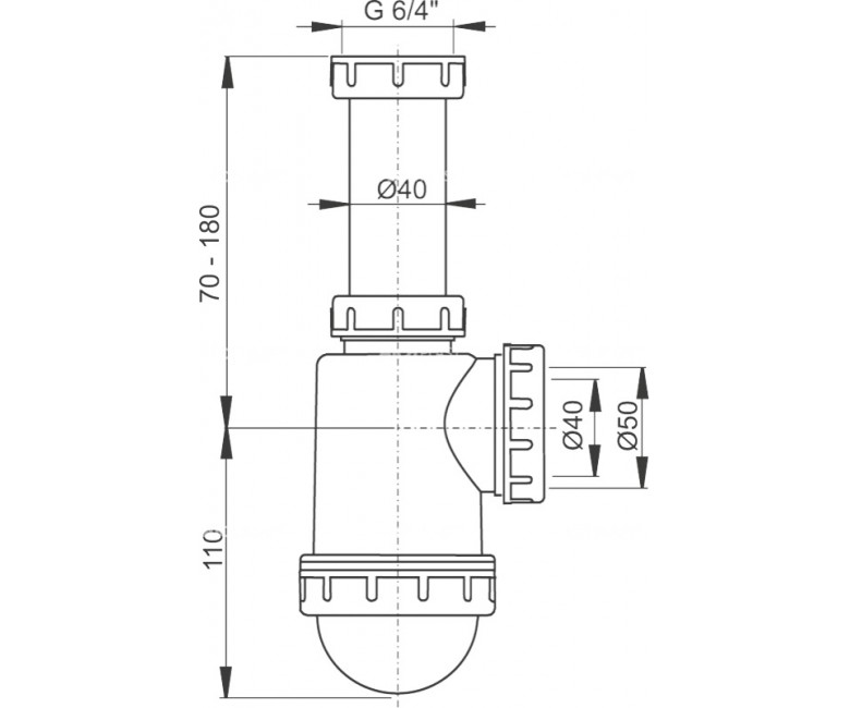 Сифон для мойки AlcaPlast с накидной гайкой 6/4" A443-DN50/40
