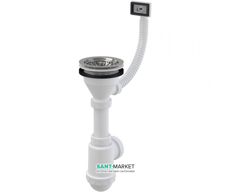 Сифон для мойки AlcaPlast с нержавеющей решёткой и гофропереливом