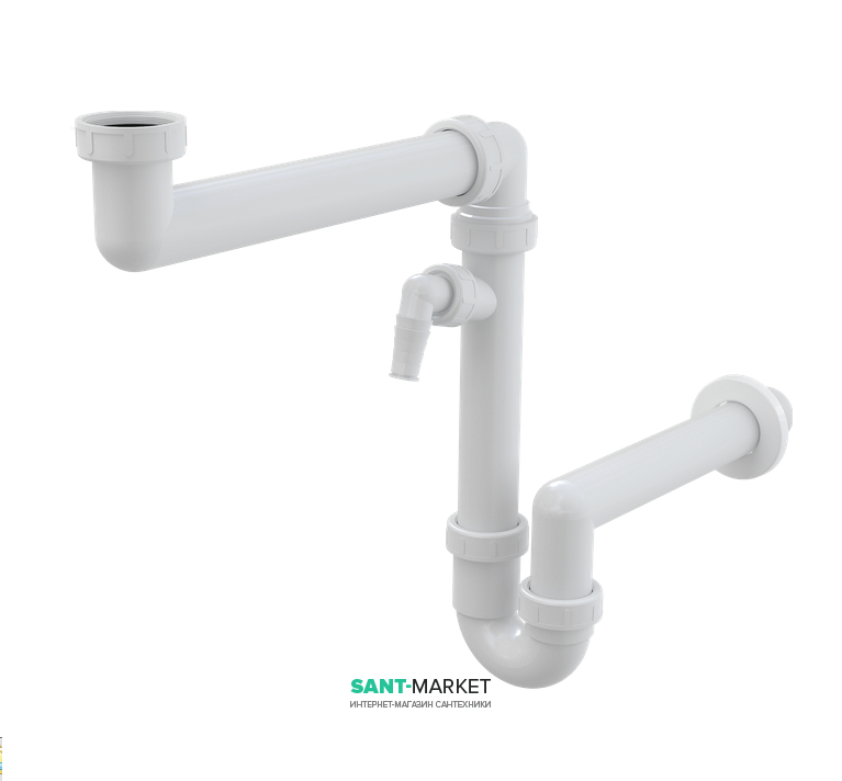Сифон для мойки AlcaPlast со штуцером и с накидной гайкой 6/4"