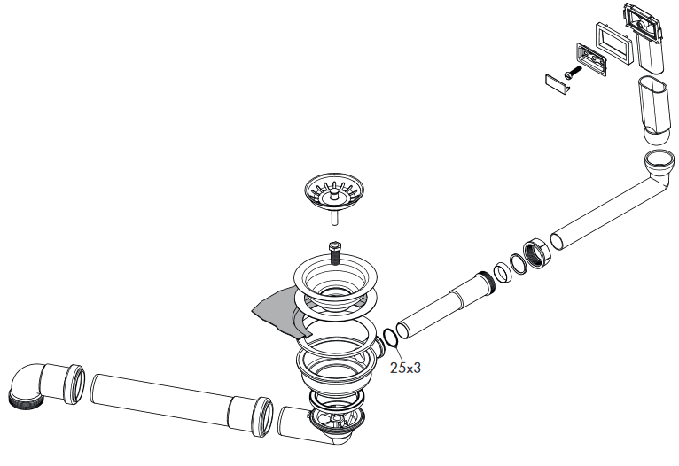 - состоит из: комплекта для слива и перелива, корзина для сита, ловушка