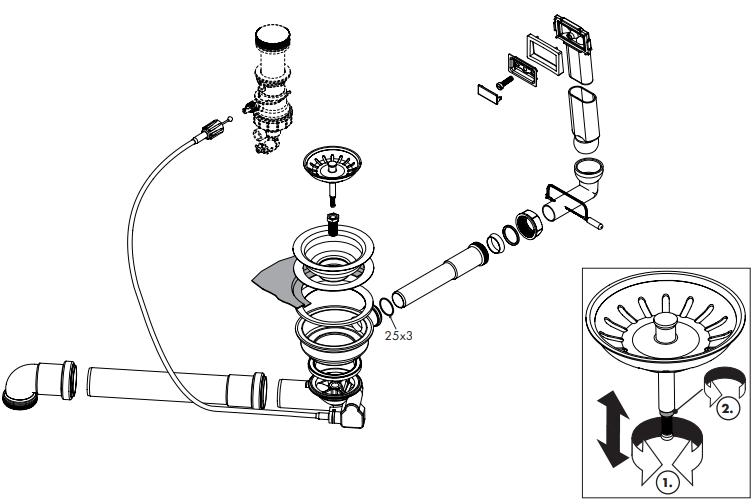 - состоит из: комплекта для отходов и перелива, pop-up клапан, ловушка