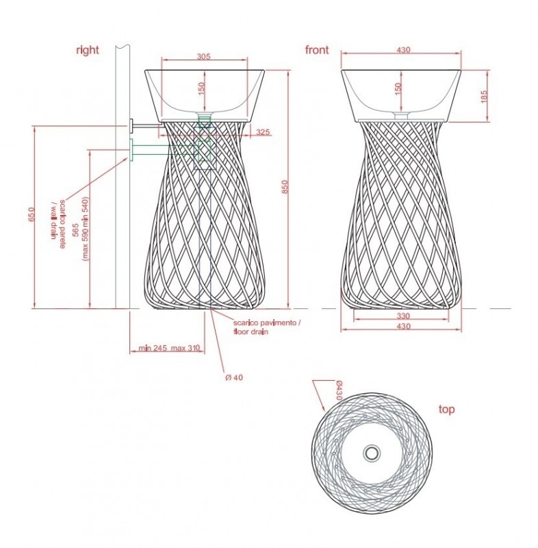 - Диаметр сливной трубы, мм: 40