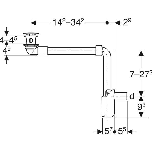 - Длина трубы до слива, см: 34.2