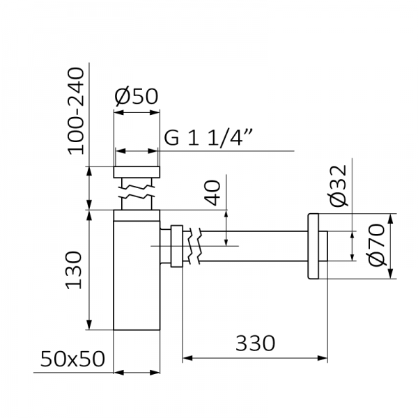 - Тип сифона: бутылочный