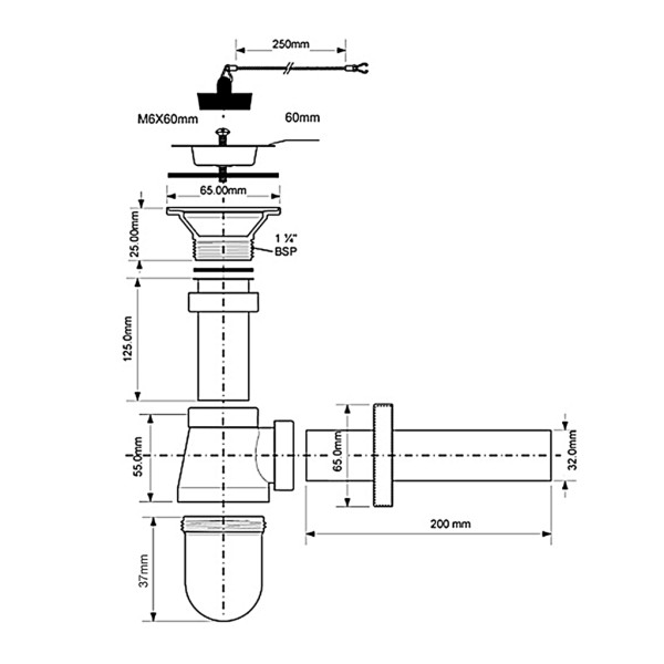 Сифон для раковины и биде McAlpine 220+255СВ со сливом и пробкой латунь/хром